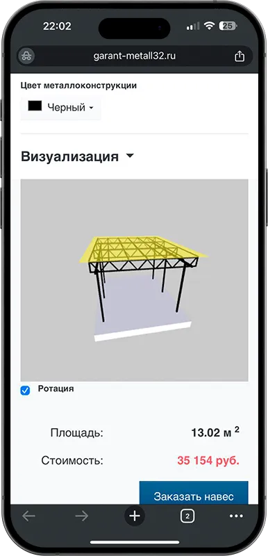 Калькулятор стоимости навеса с 3D визуализацией в Пятигорске